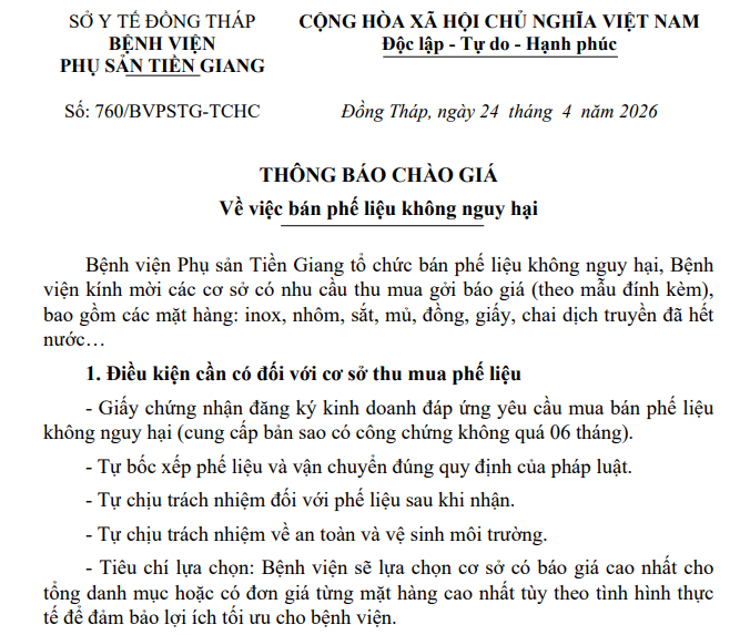 BỆNH VIỆN PHỤ SẢN TIỀN GIANG