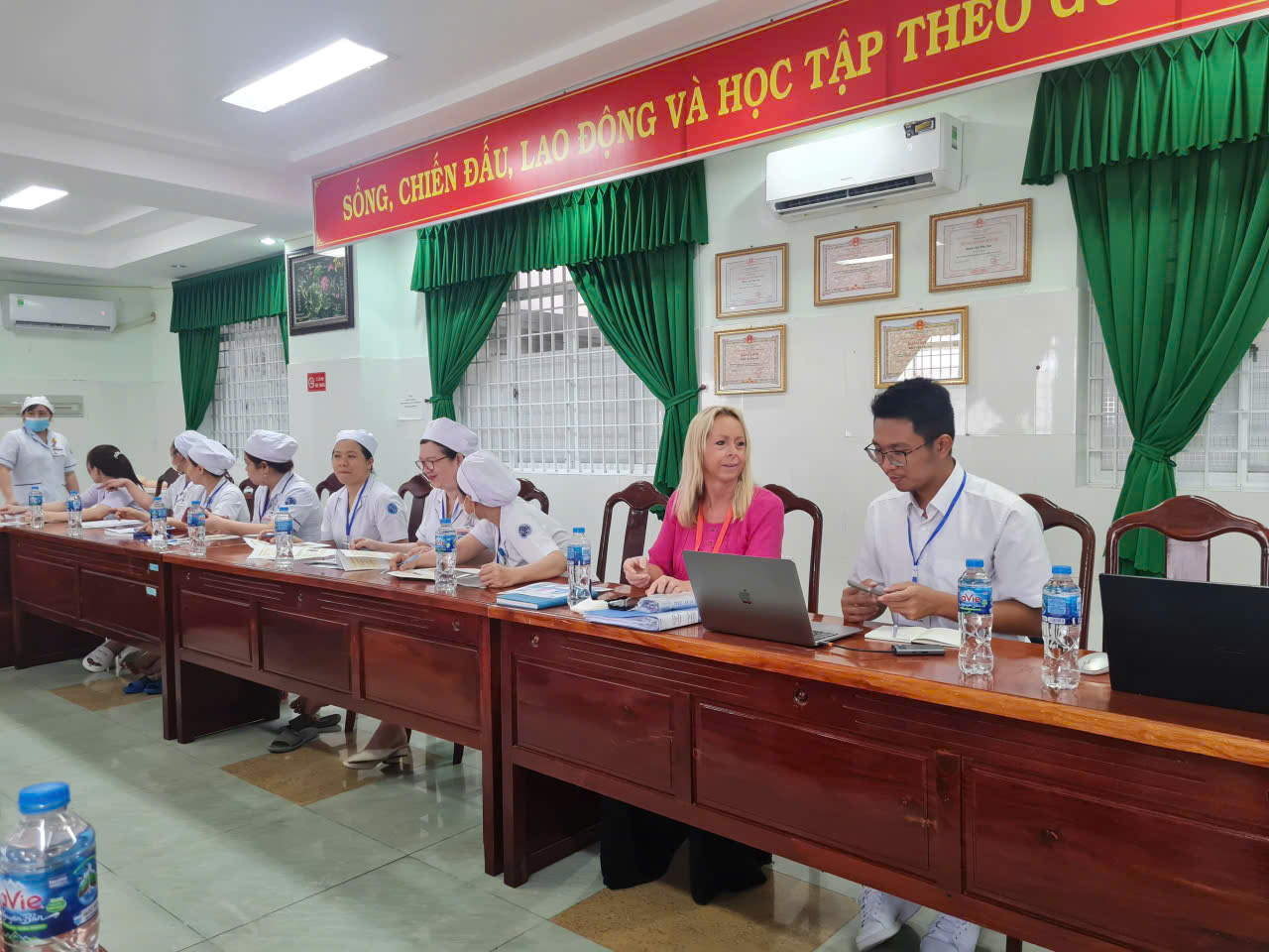 Bà Clare Louise Miller (áo hồng), chuyên gia Điều dưỡng thực hành sơ sinh nâng cao tại buổi đào tạo