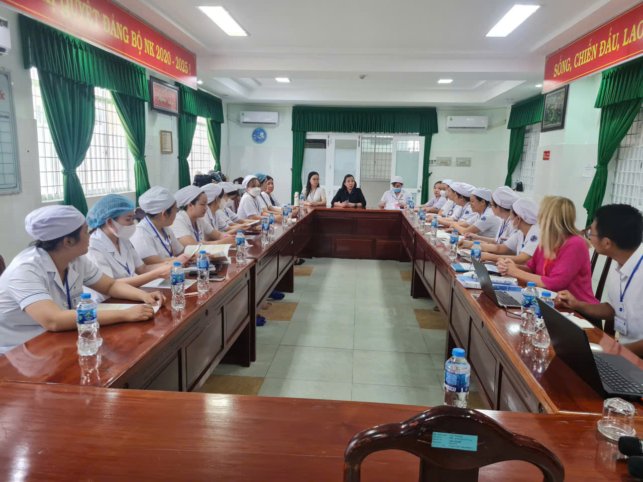 Đoàn chuyên gia trao đổi cùng các học viên trước buổi đào tạo
