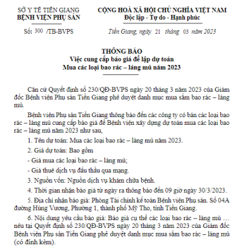 Xem chi tiết tại đây: 1.thongbaobaogia-inanbieumaunam2023._signed Đính kèm QĐ 306/QĐ-BVPS ngày 11/5/2023: 08-qđpheduyetdanhmucinannam2023-duthao_signed...