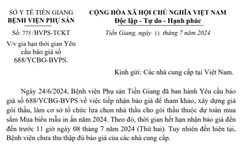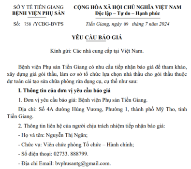 Bệnh viện Phụ sản Tiền Giang có nhu cầu tiếp nhận báo giá để tham...