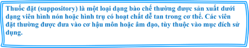 1. Khái niệm: Thuốc đặt (suppository), còn gọi là thuốc đạn, thuốc trứng hoặc thuốc...
